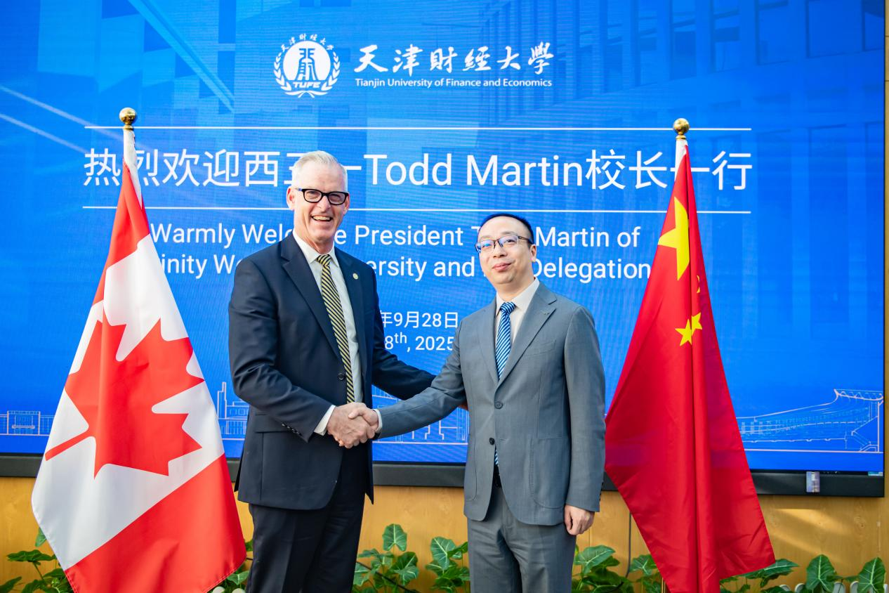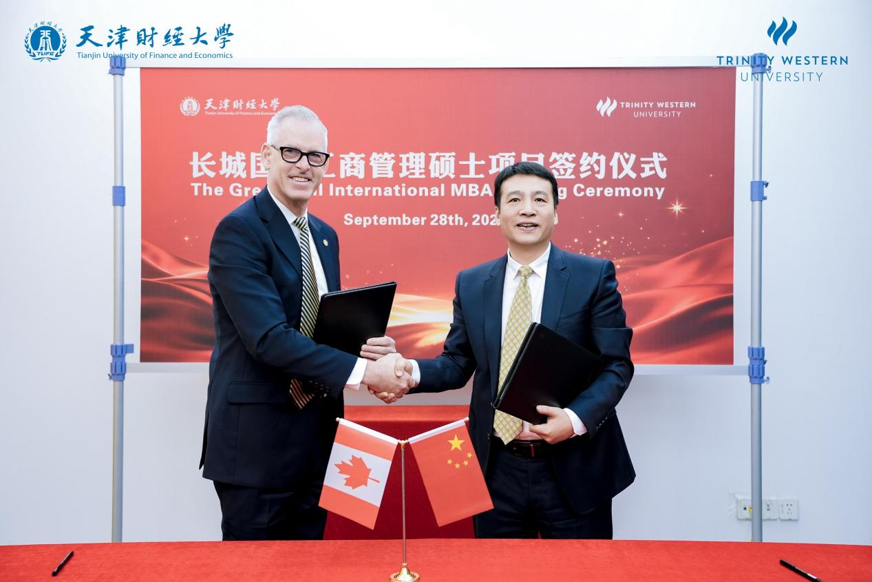 2025年9月28日,天津财经大学与加拿大西三一大学合作举办的长城国际工商管理硕士项目(简称“长城国际MBA项目”)2025届毕业典礼在天财校园盛大举行。天津财经大学党委书记赵鸣、校长孟昊分别会见了西三一大学校长Todd Martin、商学院院长Mark Lee和商学院副院长Chen Liu一行,并就未来的合作方向进行了坦诚而深入的交流。双方共同签署了新的合作协议。