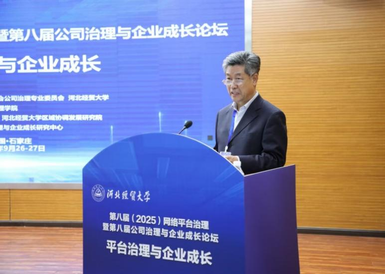 2025年9月27日,以“平台治理与企业成长”为主题的第八届(2025)网络平台治理暨第八届公司治理与企业成长论坛在河北经贸大学举办。本届论坛由中国管理现代化研究会公司治理专业委员会、河北经贸大学主办,河北经贸大学工商管理学院承办,天津财经大学商学院、河北经贸大学公司治理与企业成长研究中心协办。彭正银教授带领团队参加此次论坛,并发布《中国数字平台治理研究报告(2025)》。