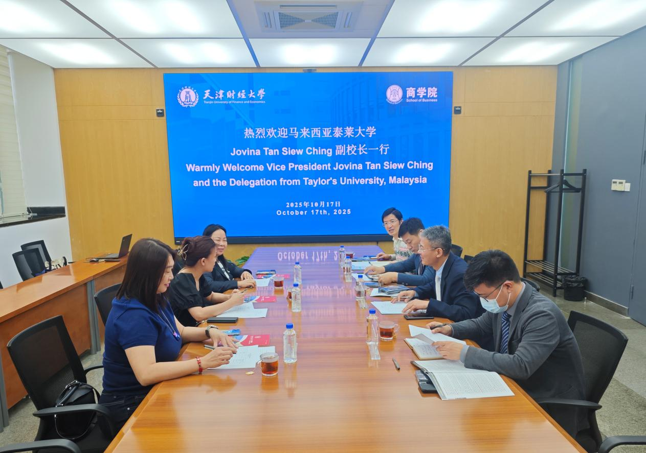 Jovina Tan Siew Ching对学校的热情接待表示感谢。她介绍,泰莱大学创办于1969年,是马来西亚历史最悠久的私立大学之一,目前已经取得ACCSB认证,2026年QS世界排名位列253位,酒店与休闲管理全球第14位,会计与金融、商业管理稳居QS前150位,拥有ACCA白金级、CFA Institute University Affiliation、ASEAN UNIVERSITY NETWORK(AUN)及THE、QS五星+等多项国际认证与荣誉。她表示,天津财经大学在财经高等教育的深厚积淀与泰莱大学“Industry-into-Classroom”校企嵌入式教学模式有很强的互补性,双方可逐步在绿色金融、跨境电商、ESG及可持续旅游等新兴交叉领域展开合作,携手打造中国-东盟卓越商科教育共同体。