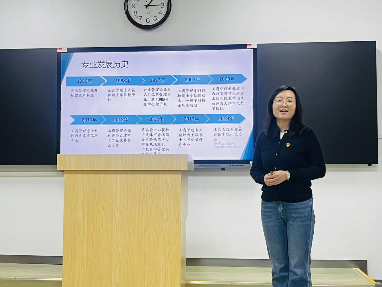 在“学涯导航”环节,商学院企业管理系教师党支部书记高楠为在场的国际教育学院师生带来了精彩的专业解读。高老师结合商学院的学科优势,深入浅出地介绍了企业管理系的专业设置、特色课程体系以及未来的就业导向。她不仅展示了商学院严谨的治学态度,也为留学生们未来的学业规划提供了清晰的指引和宝贵的建议。在随后的互动环节中,中外学生踊跃提问,现场气氛热烈,展现了不同文化背景下青年学子对知识的共同渴求。