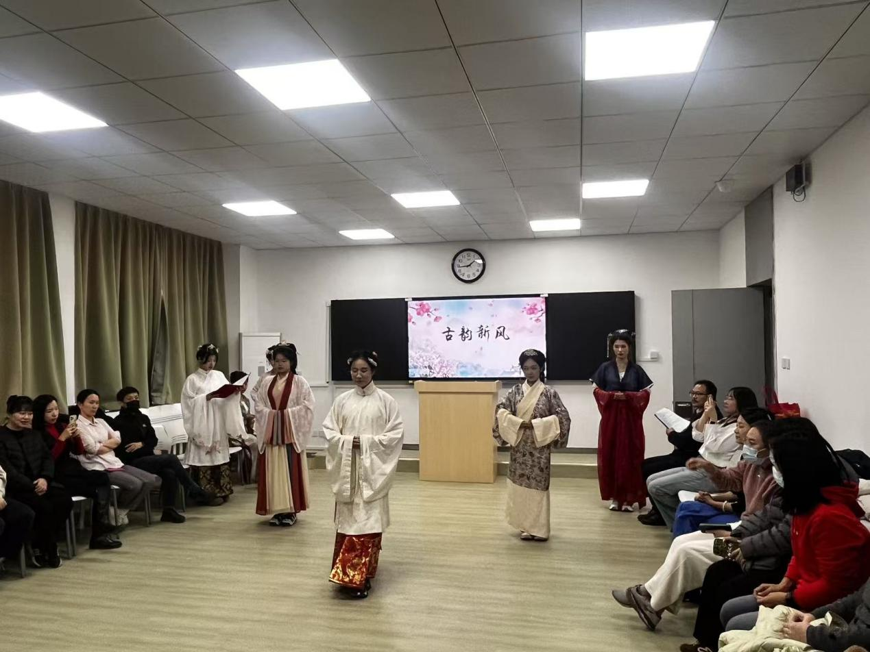 “文化互鉴”环节则将活动推向了高潮。来自商学院企业管理系学生党支部雅矜汉服社的同学们身着华美的传统服饰,为在场师生带来了一场视觉盛宴。通过舞蹈表演、汉服走秀以及中华传统礼仪解说,同学们生动演绎了中华优秀传统文化的独特魅力与深厚底蕴。这不仅让留学生们近距离感受到了“华夏衣冠”之美,也为讲好中国故事、传播中国声音搭建了生动的舞台。