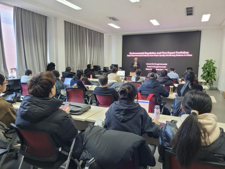 为推动商学院实证研究范式与方法的持续革新,凝聚校友智慧以共同促进学科发展,学院特邀请优秀校友、浙江大学吴志岩教授重返母校,为商学院师生举办了一场题为《环境规制与企业出口转型:来自中国水质监测断点的证据》的精彩学术讲座。