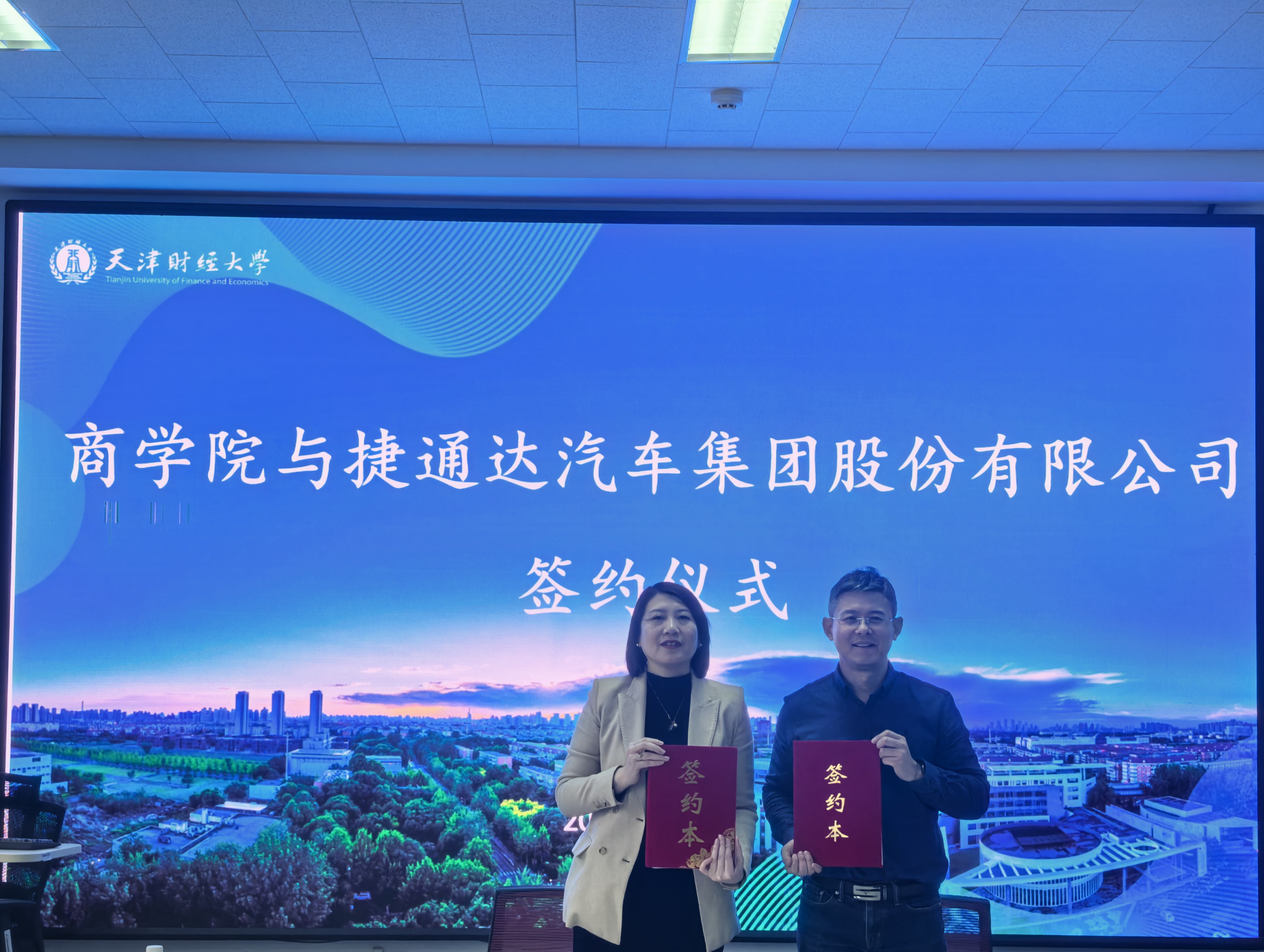 在全体与会人员的见证下,刘鹏与张建宇分别代表校企双方签署战略合作协议。此举标志着双方合作迈入全新阶段,未来将为商学院学子提供更加丰富的实践平台与就业通道,同时也将为捷通达汽车集团持续输送高素质商科专业人才。