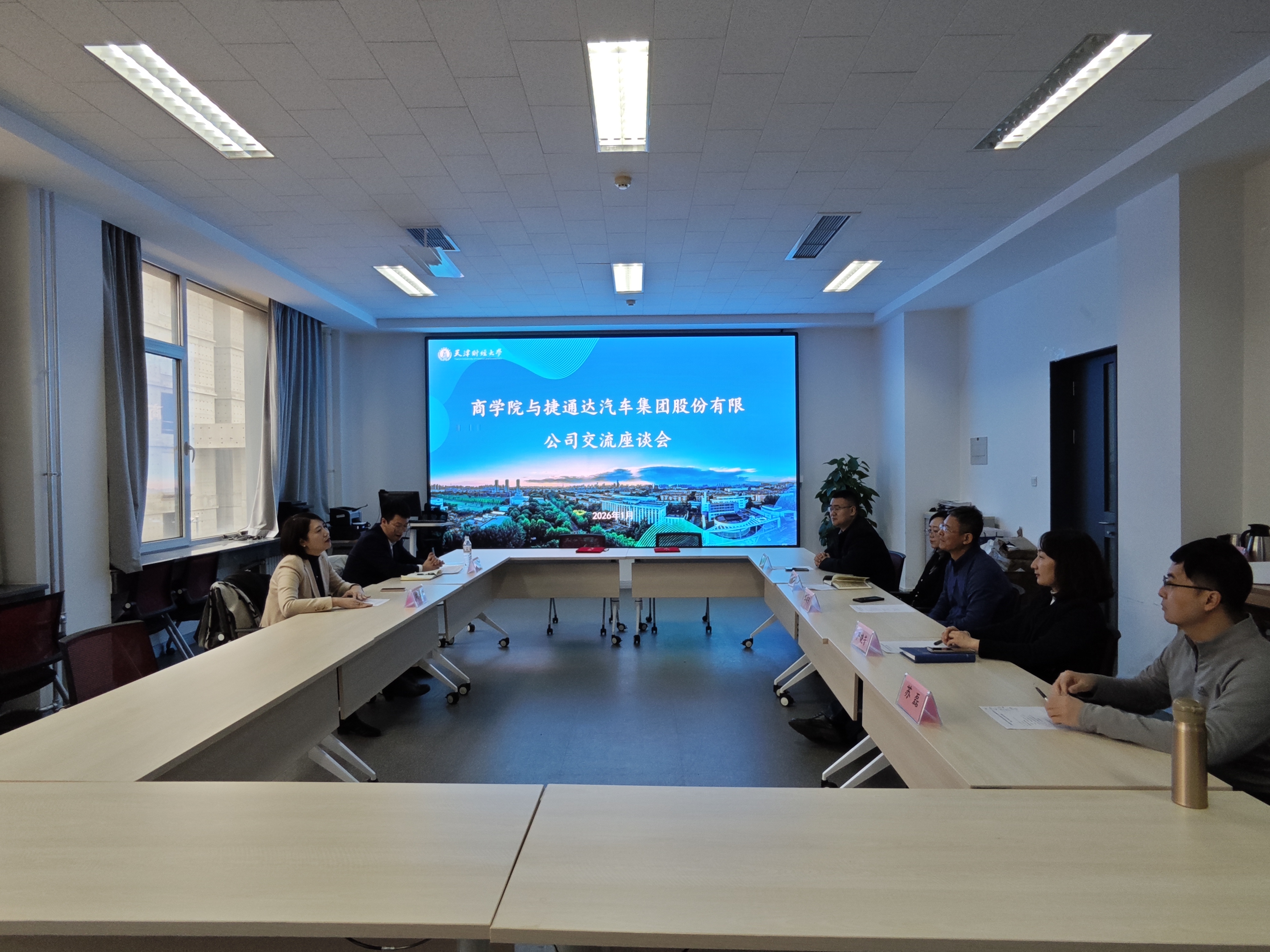 2026年1月14日上午,商学院与捷通达汽车集团股份有限公司校企合作签约仪式在我院N5-211会议室成功举办。捷通达汽车集团首席人力执行官刘鹏、招聘经理兰晨,商学院党委副书记、院长张建宇,党委副书记、纪委书记严晓芳,企业管理系主任高楠,人力资源管理系教师苏磊,辅导员张鑫出席仪式。