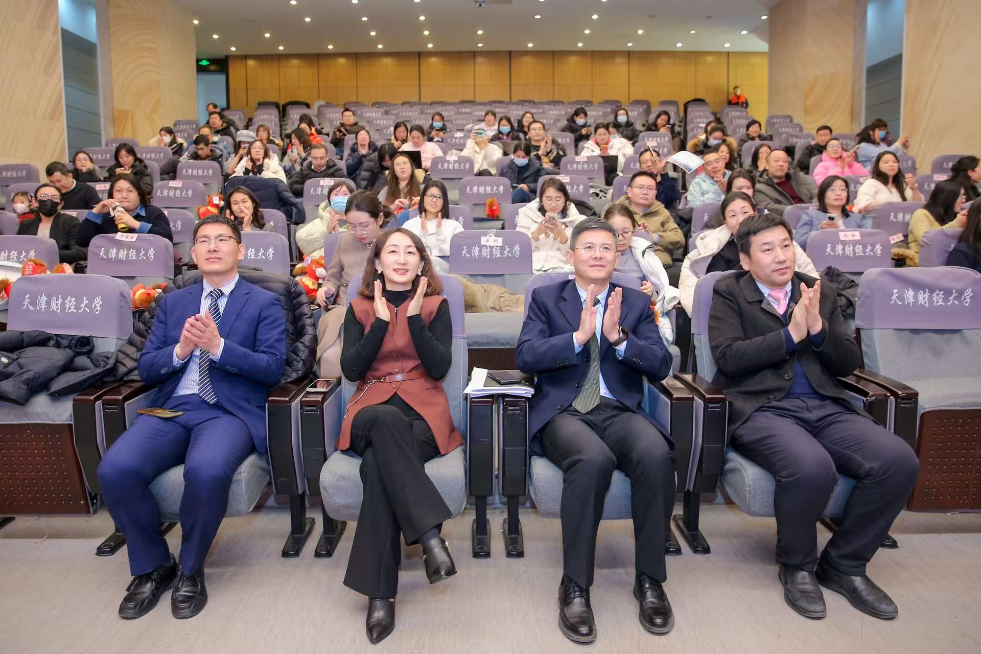 岁序更替,华章日新。为深情送别成果丰硕的2025、昂首迎接奔腾而来的2026丙午马年,商学院2025年度总结表彰大会在月牙报告厅隆重举行。会议以荣誉致敬奋斗、以总结镌刻足迹,全面贯彻落实学校第三次党代会精神,锚定“奋进天财、开放天财、创新天财、智慧天财、和谐天财”五大战略蓝图,系统推进“思政商学院、国际商学院、创新商学院、数智商学院、和谐商学院”建设。全院教师齐聚一堂,共同见证荣誉时刻,凝聚高质量发展奋进力量。会议由乔时、汪爽两位老师主持。