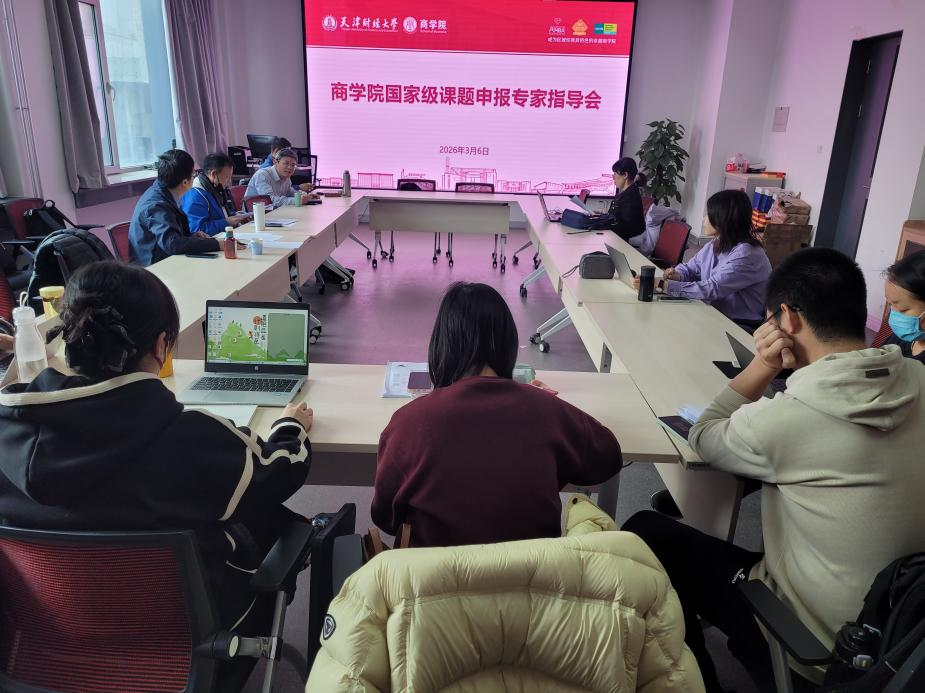 为扎实推进2026年国家级课题申报工作,切实提高课题申报质量,3月7日,商学院组织召开国家级课题申报专家指导会,邀请山东大学李建标教授、天津大学蒋琬教授到场进行一对一指导。商学院张建宇院长、夏良杰副院长、国家级项目申报负责人及学院部分师生参加了指导会。
